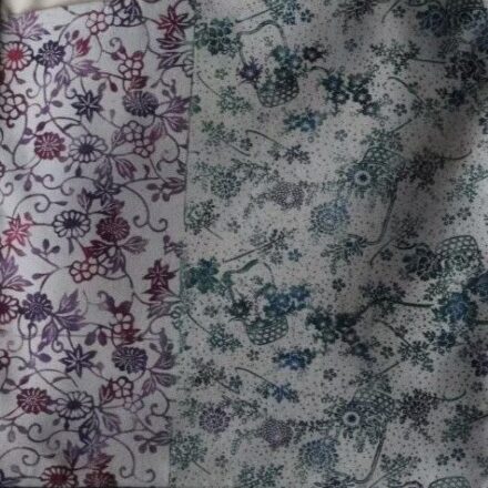 カラー:花篭×花唐草 / 水紋と小鳥×いちょう / 格子×よろけ縞(全3色、各色2柄)